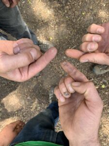 “I don’t know,” he said and then burst back into laughter. Sop’s laugh is—and has always been—super contagious. Now we were all rolling with laughter as Sop continued to rummage through his pack, looking like some crazed magic forest gnome who appeared out of the bush with gifts. “Oh, here they are!” Sop had found what he was looking for. “Damn, I almost thought I forgot them.” In his hand was a neatly folded square of tin foil, no bigger than 2” x 2”. What is he up to? I thought.