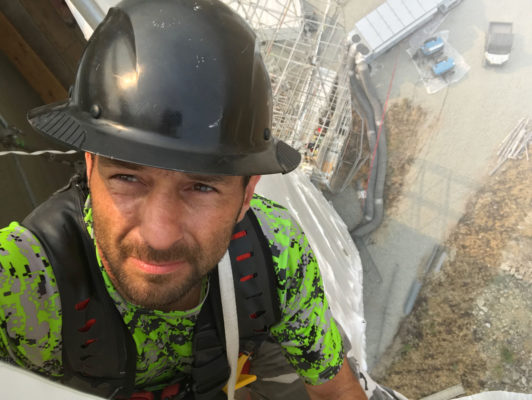 Shrink-wrap Steve Nolan takes a selfie 70 feet up.